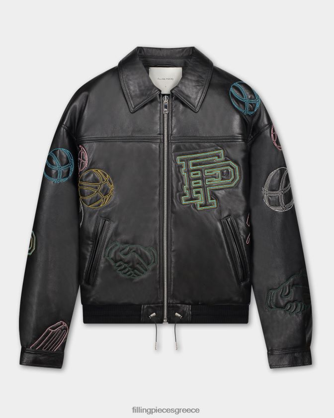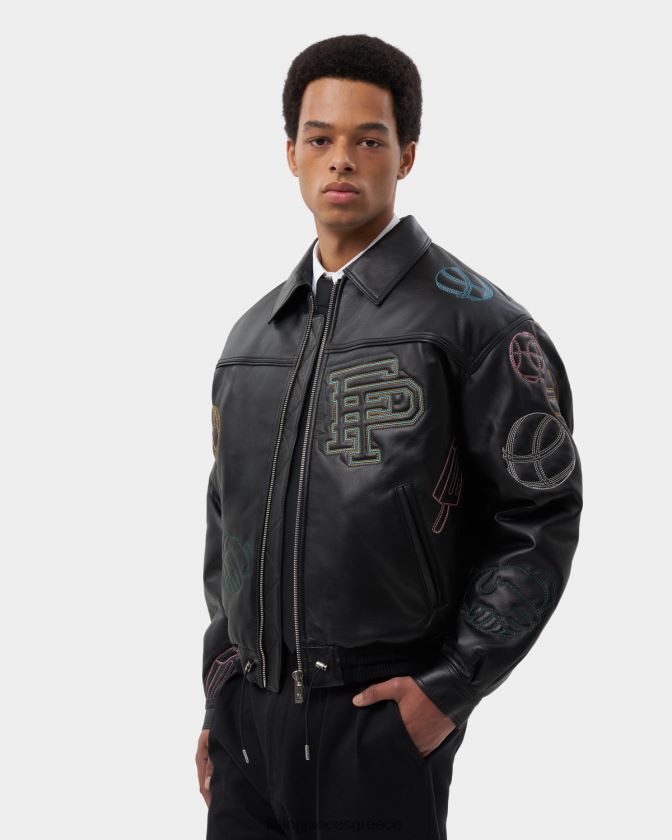 το ξεχωριστό κομμάτι της συλλογής είναι το πλήρως κεντημένο δερμάτινο μπουφάν, σχολαστικά χειροποίητο στην Πορτογαλία από απαλό δέρμα. Με λαιμόκοψη με γιακά πουκαμίσου και έμπνευση από τις αρχές της δεκαετίας του 2000 σε εφαρμογή και λεπτομέρεια, αυτό το σακάκι παρουσιάζει τα περισσότερα από τα γραφικά αυτής της σεζόν σε πολύχρωμα κεντήματα πλήρως στο ύφασμα. η υπερμεγέθη εφαρμογή προσδίδει νοσταλγική εμφάνιση και αίσθηση με μια μοντέρνα πινελιά.