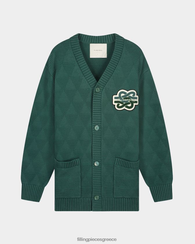 το έμβλημα Gowtu εμφανίζεται ως μπάλωμα σε μια πλεκτή ζακέτα σε φασκόμηλο πράσινο απόχρωση. Το έμπλαστρο αυτής της σεζόν αποτίει φόρο τιμής στο δαχτυλίδι 'matten-klopper', συμβολίζοντας την κάθαρση κάθε αρνητικότητας από το παρελθόν. Το ίδιο γραφικό χρησιμοποιείται σε πολλά αντικείμενα της συλλογής ως φόρο τιμής στις ρίζες μας. η πλεκτή ζακέτα διαθέτει μια τριγωνική τρισδιάστατη δομή για βάθος και λεπτομέρεια, που συμπληρώνεται από κουμπιά σε χρώμα ιβουάρ Fp.